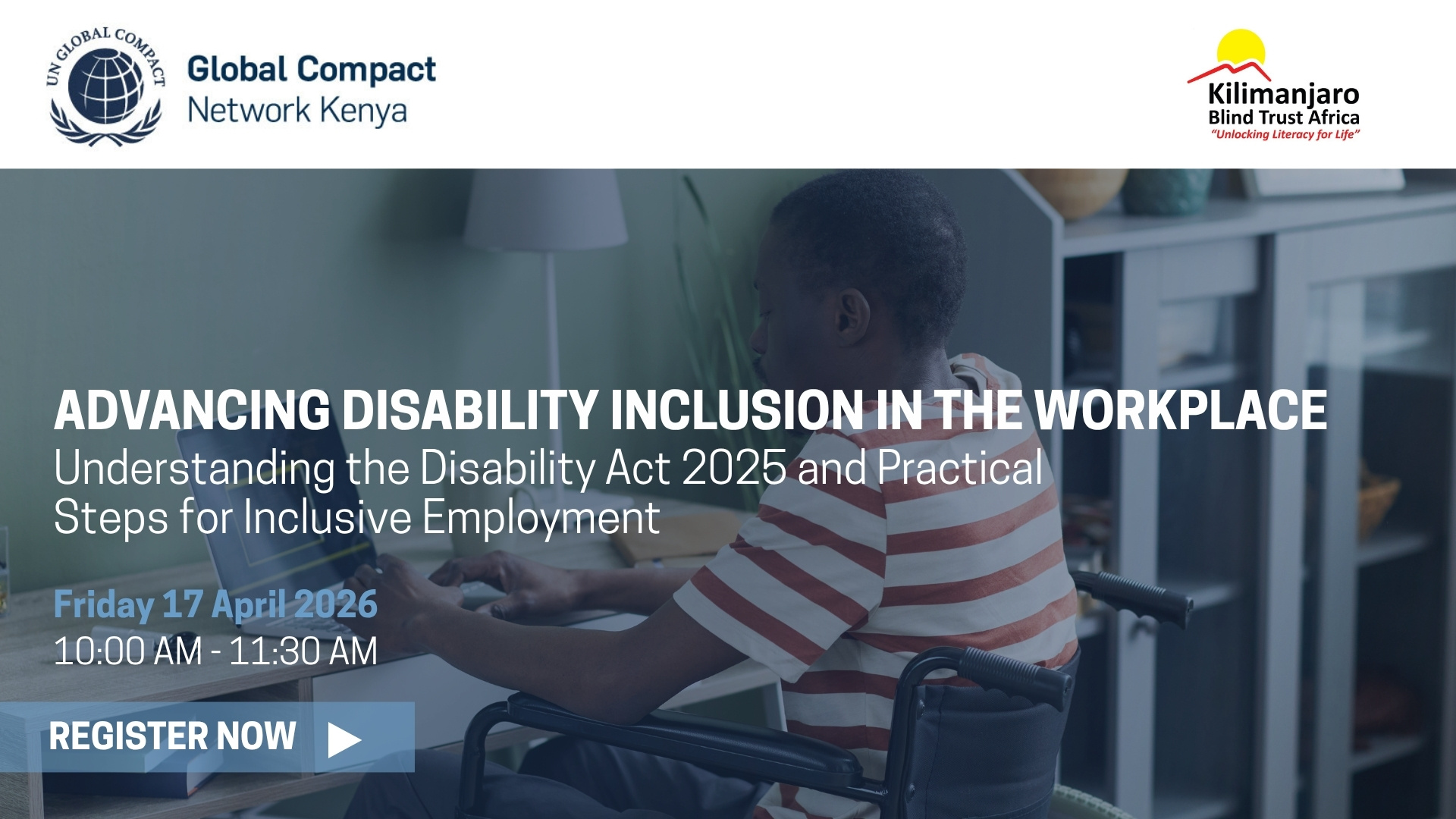 Global Compact Network Kenya, in partnership with Kilimanjaro Blind Trust Africa, will convene a virtual webinar to support companies in advancing disability inclusion within the workplace.