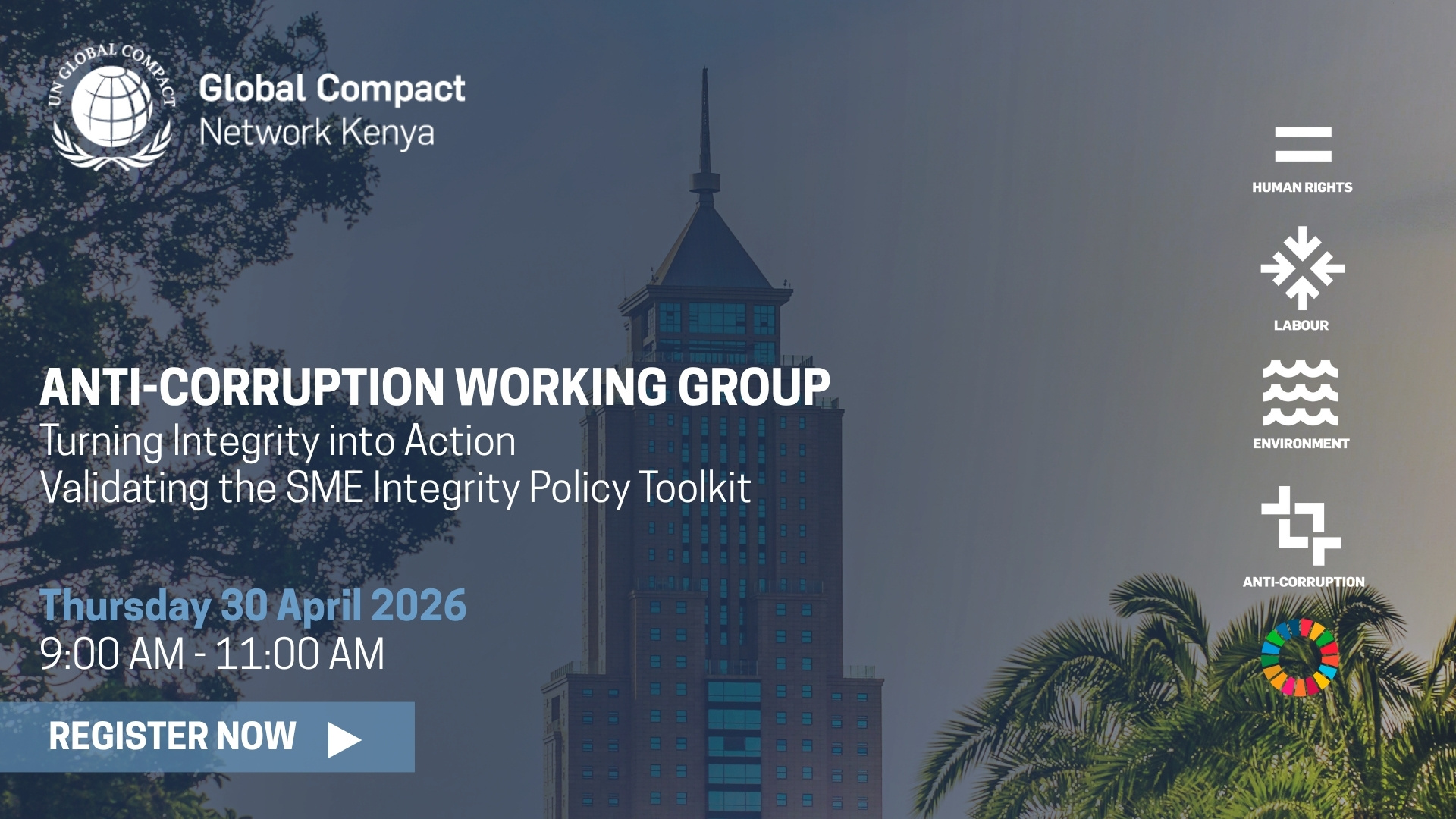 Global Compact Network Kenya will convene the second Anti-Corruption Working Group session of 2026, bringing together members for an in-person working meeting focused on advancing shared priorities.