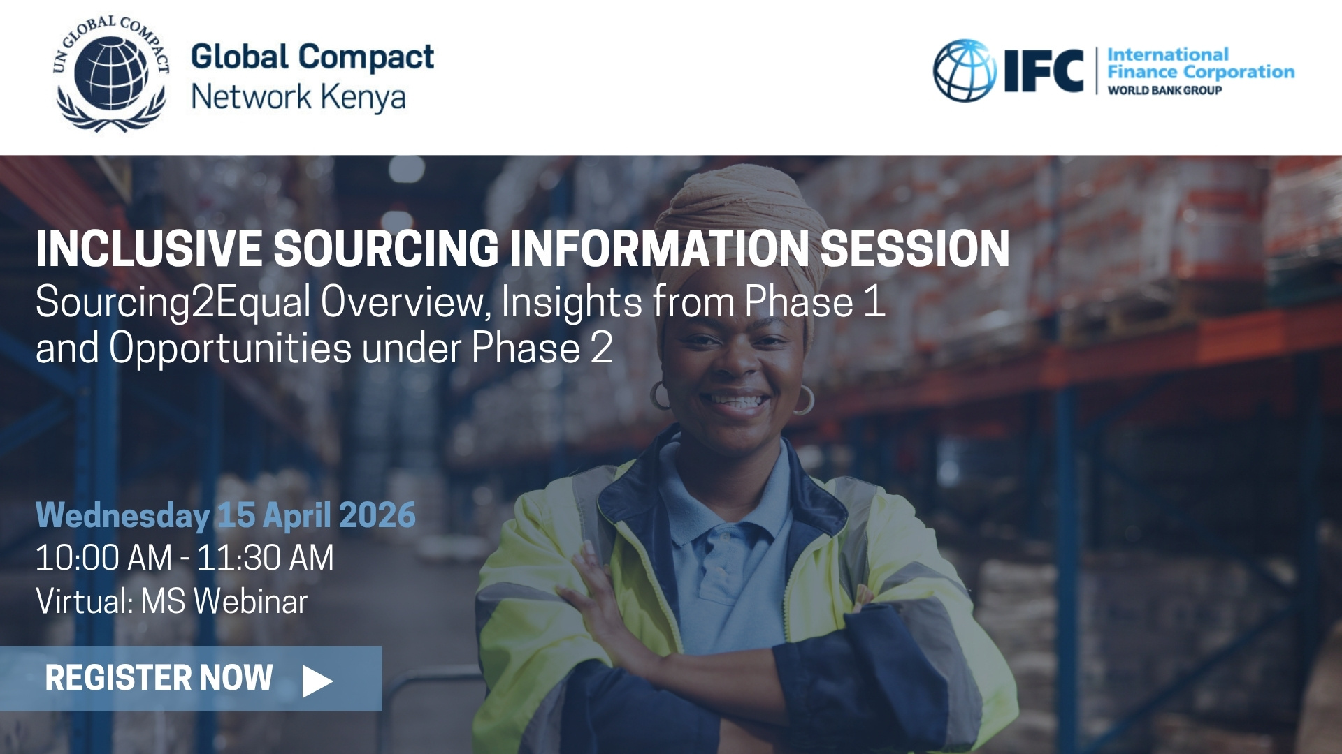 Global Compact Network Kenya, in partnership with the International Finance Corporation, will convene a virtual information session on inclusive sourcing as part of the preparatory engagements leading up to the CEO Dialogue on Inclusive Sourcing scheduled for 7 May 2026, a high-level convening of business leaders to advance corporate commitment in this area.
