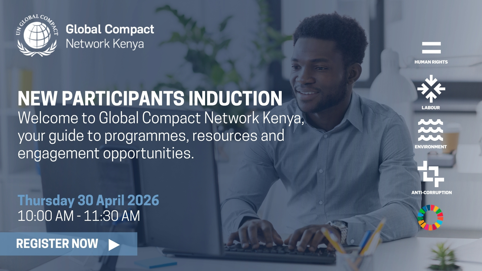 Global Compact Network Kenya invites newly participating organizations to join our New Participants Induction Session, a virtual onboarding session designed to welcome participants and guide them through the resources, programmes and engagement opportunities available within the Network.