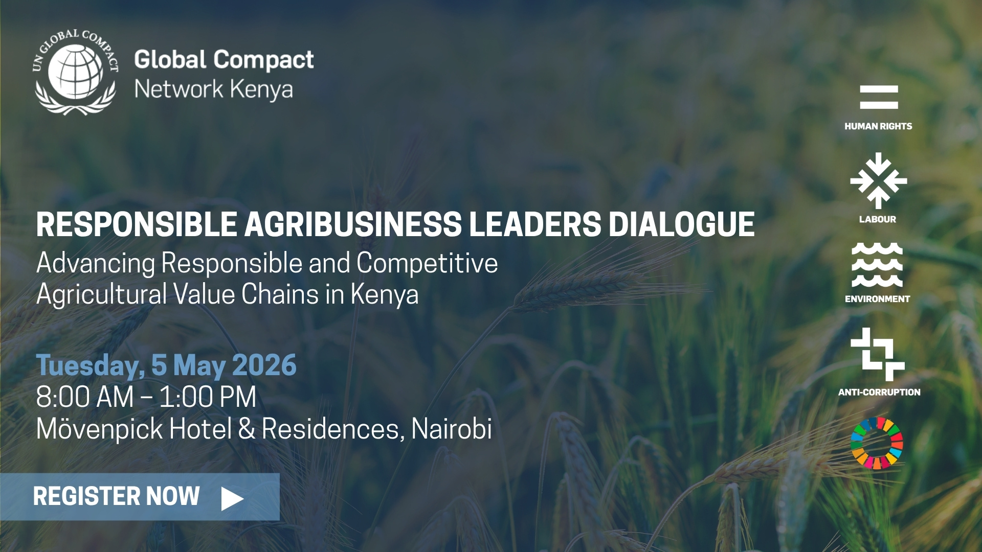 Global Compact Network Kenya will convene a closed-door Responsible Agribusiness Leaders Dialogue under the theme Advancing Responsible and Competitive Agricultural Value Chains in Kenya.